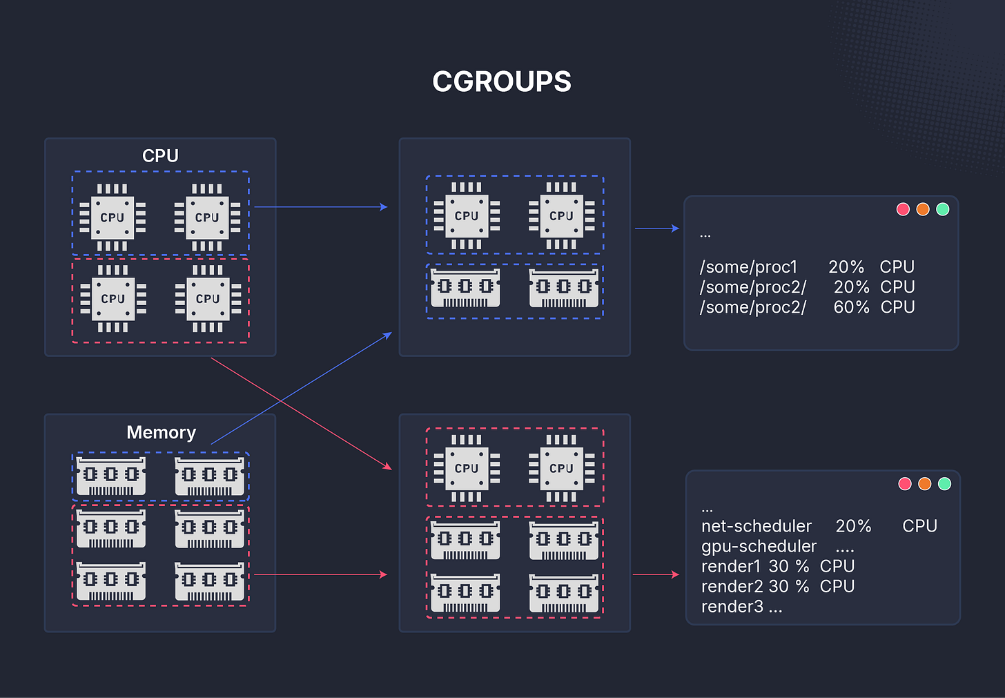 Now, each namespace has its own virtual view of cgroups, so processes can only see and manage their own resource quotas.
