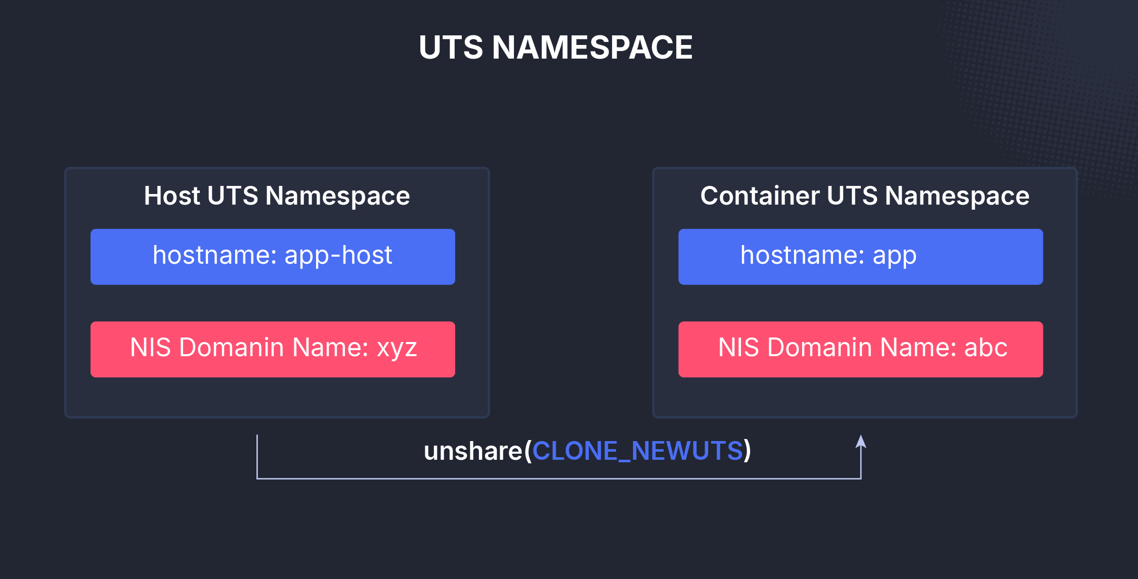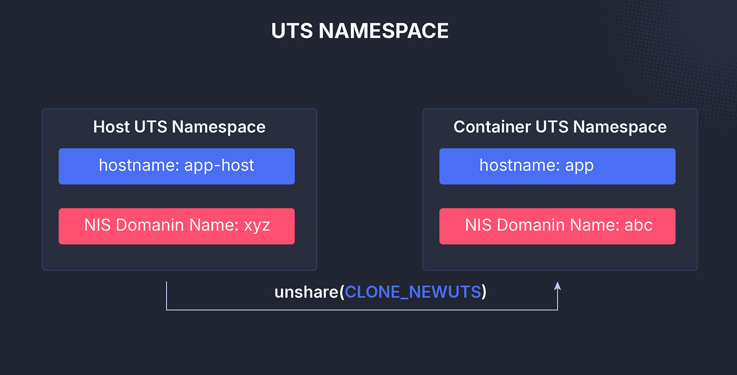UTS stands for UNIX Time-Sharing, and this namespace controls system identifiers, the hostname and domain name.