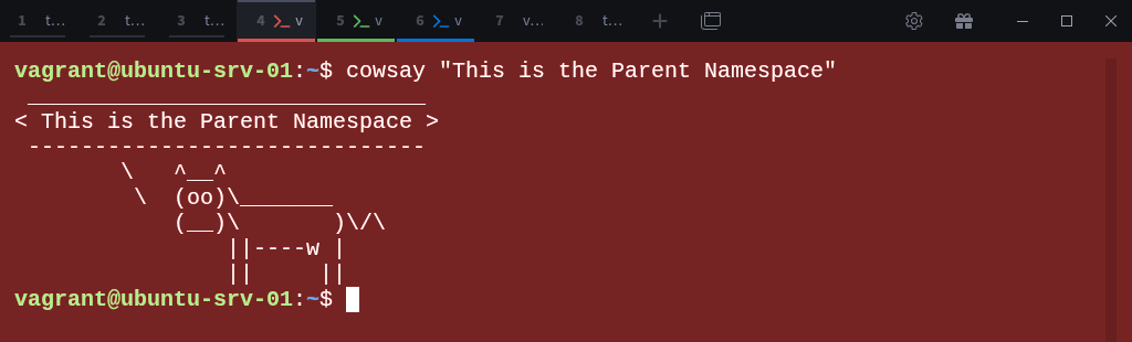 Now that we’ve confirmed the new namespace exists, let’s go back to the parent-ns terminal and check what it can see.