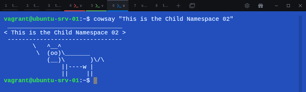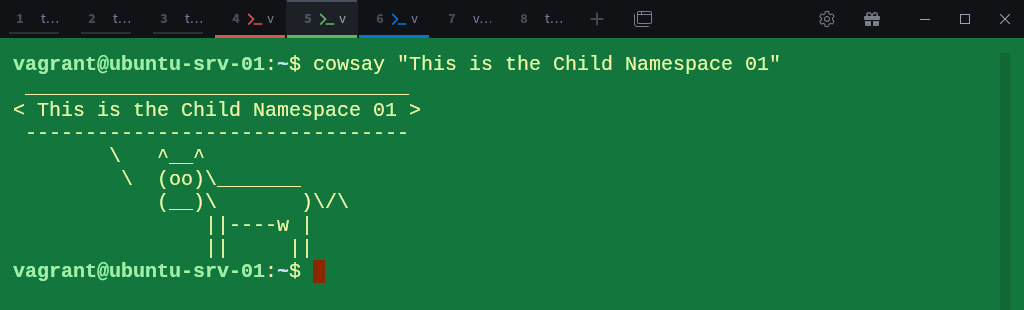 Now let’s move to the third terminal (child-ns-02) to extend this concept.