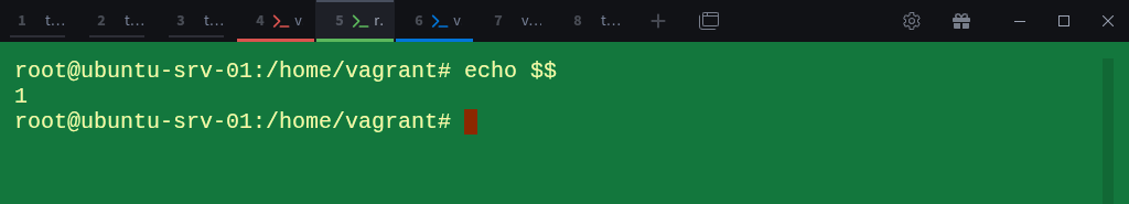 # echo $$It prints 1, meaning this shell is now acting as the init process of the new namespace, responsible for reaping child processes and managing lifecycle events inside this isolated world.