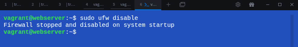 But first let’s do some house cleaning and disable the firewall on the webserver so that we don’t have any issues when testing the dynamic tunnel.