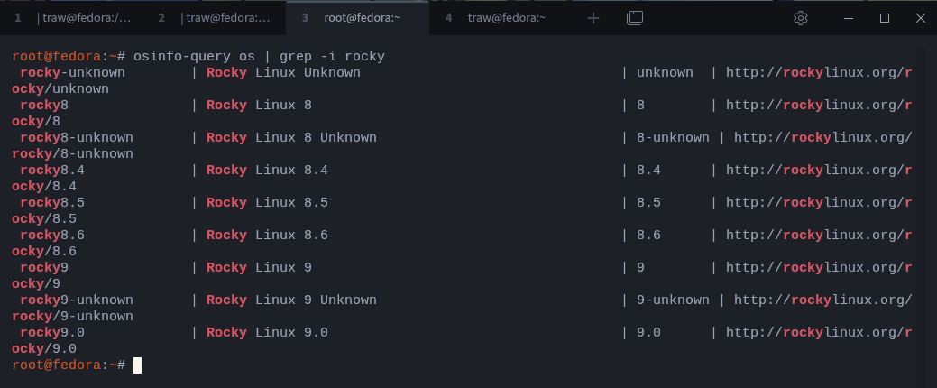 $ osinfo-query os | grep -i rockyOn my system, the latest available entry is rocky9.0.