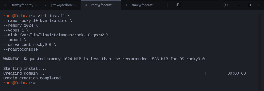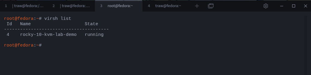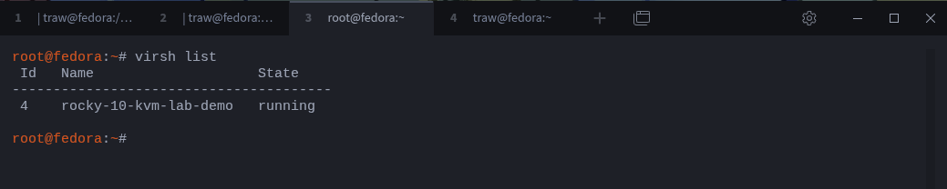 $ virsh start rocky-10-kvm-lab-demoClosing