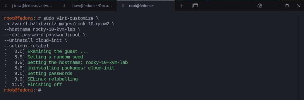 The virt-customize tool provides many more options than what is shown here. You can explore them using the manual pages (man virt-customize) and experiment based on your needs.