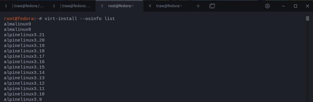 $ virt-install --osinfo listBut osinfo-query os is prefered since it provides additional info.